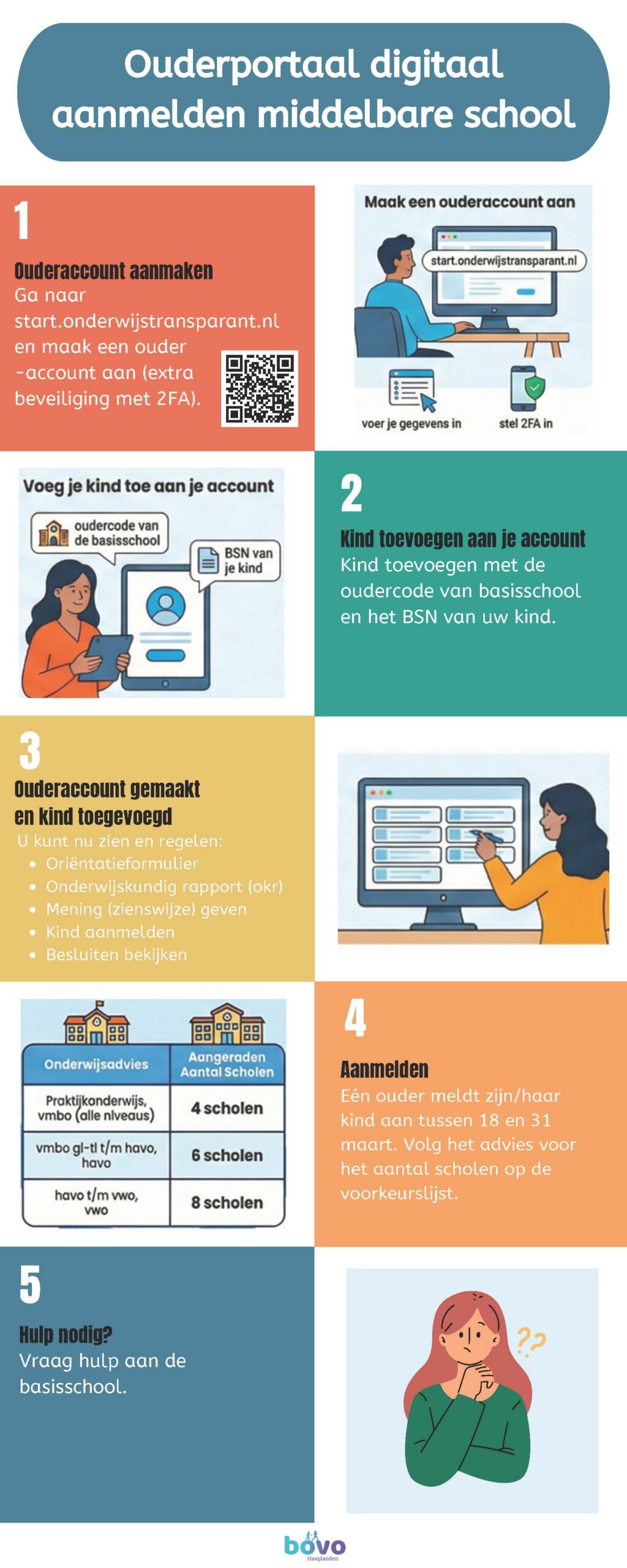 U kunt uw kind via het ouderportaal in de applicatie van Onderwijstransparant (OT) digitaal aanmelden op de middelbare school.
